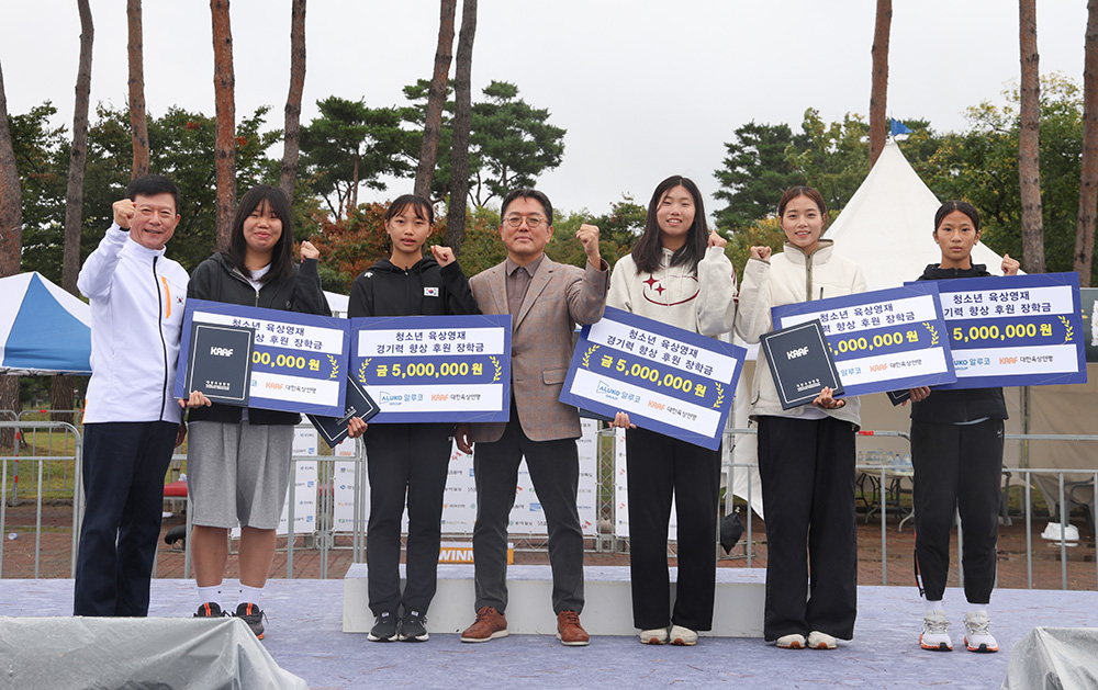 ¡Û ´ëÇÑÀ°»ó¿¬¸Í(ȸÀå À°ÇöÇ¥)Àº 19ÀÏ °æÁÖ ½Ã¹Î¿îµ¿Àå¿¡¼ ¿¸° µ¿¾ÆÀϺ¸ 2024 °æÁÖ±¹Á¦¸¶¶óÅæ´ëȸ ÇöÀå¿¡¼ ¡®¾Ë·çÄÚ ±×·ì¡¯ÀÌ ÈÄ¿øÇÏ´Â ¡®Ã»¼Ò³â À°»ó ¿µÀç °æ±â·Â Çâ»ó ÀåÇÐ±Ý ¼ö¿©½Ä¡¯À» ÁøÇàÇß´Ù°í ¹àÇû´Ù. À̹ø ¼ö¿©½Ä¿¡¼´Â À°»ó À¯¸ÁÁÖ·Î ¼±Á¤µÈ ¿ì¼ö¼±¼ö 5¸í¿¡°Ô °¢°¢ 5¹é¸¸ ¿ø¾¿, ÃÑ 2õ5¹é¸¸ ¿øÀÇ ÀåÇбÝÀÌ Àü´ÞµÇ¾ú´Ù.